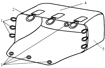 1 — петля резиновая; 2 — съемная парашютная сота; 3 — люверсы; 4 — основа; 5 — боковая стенка.