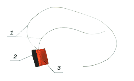 1 — трос; 2 — петельная лента (для крепления звена на правой лямке подвесной системы); 3 — основа звена.