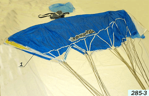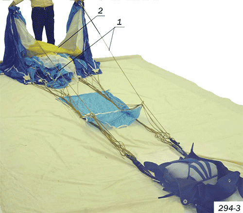 1 — кромка передняя центрального полотнища купола; 2 — метка по центру передней кромки