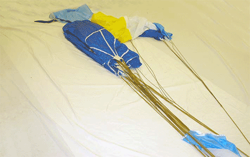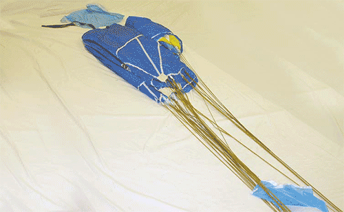 При правильной укладке парашюта группы строп от колец устройства рифления должны проходить к кольцам свободных концов, не пересекаясь.