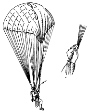 - осмотреться и убедиться, что рядом на опасном для схождении расстоянии нет парашютистов. Осмотр производить спереди слева, справа, сверху и сзади